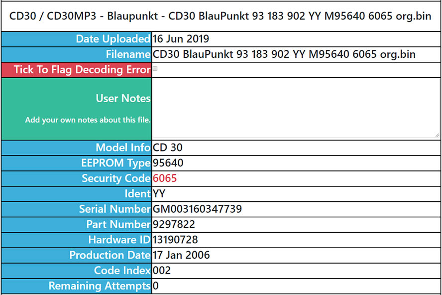 | CD30 / CD30MP3 - Blaupunkt | 211 |